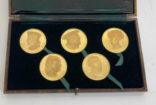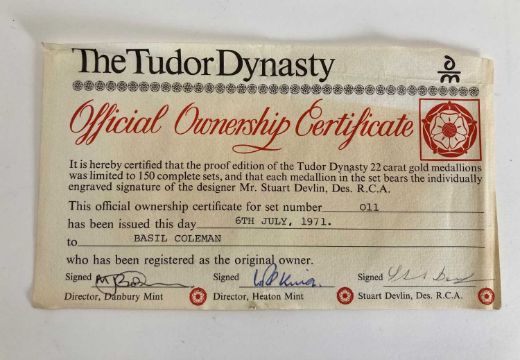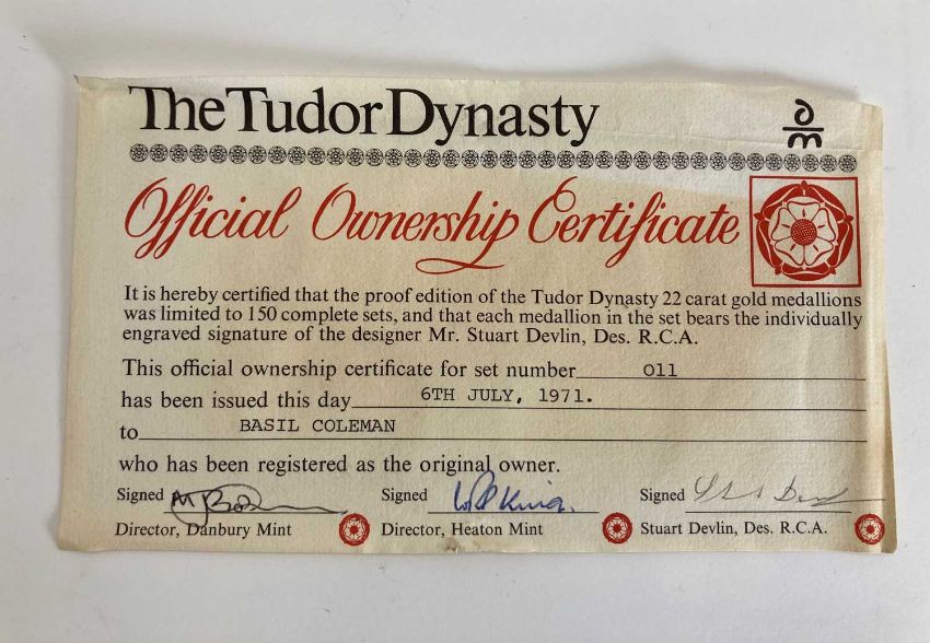 The Tudor Dynasty gold medallion collection, five medallions featuring the monarchs of the House of Tudor, all NEF, with certificate and in case of issue