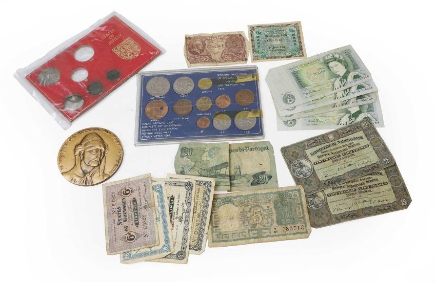 One Pound, 1981, Bicentenary of the Battle of Jersey, 1781-1981, limited edition gold, in capsule and case of issue, together with assorted other coins and banknotes