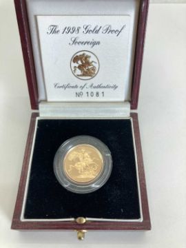 Proof Sovereign, 1998, in capsule with certificate and case of issue