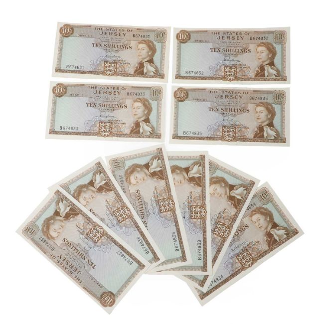 a consecutive run of Padgham Ten Shillings from serial number B674831 - B674840, all EF with slight waviness