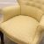 20th century, the buttoned back above scroll arms and stuff over seat in pale yellow jacquard fabric, on square tapering supports terminating in peg feet,