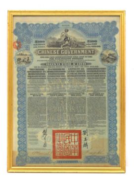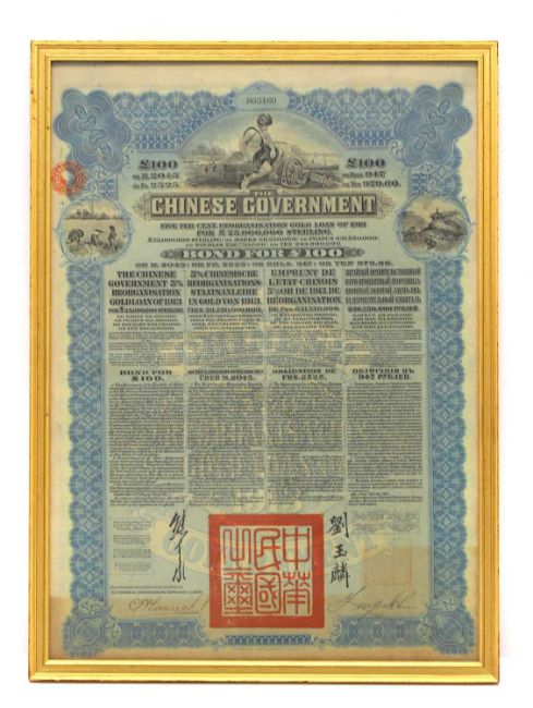 dated 1913, and Loan bond numbered 803160, framed,