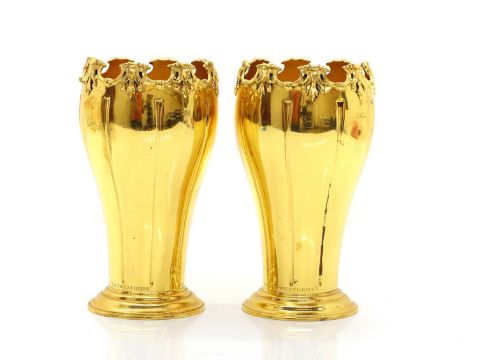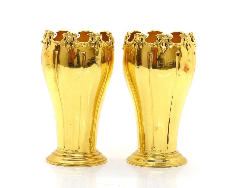 probably by Hinklenton and Phillips, London, 1915, each with moulded castellated rim over a tulip-shaped fluted body, engraved 'June B Stanley 1907 - 1957 and with love from the Wards, Ellises, and the Fairweathers',