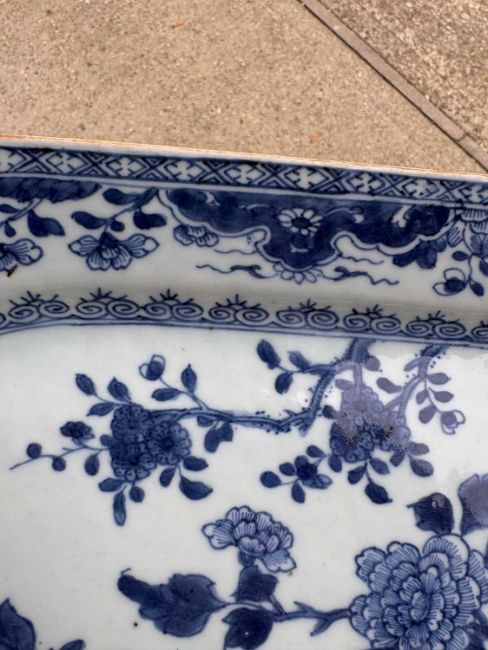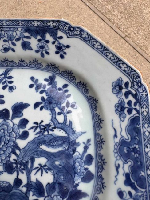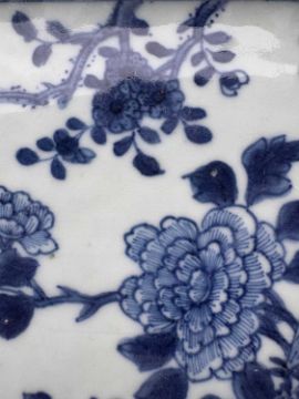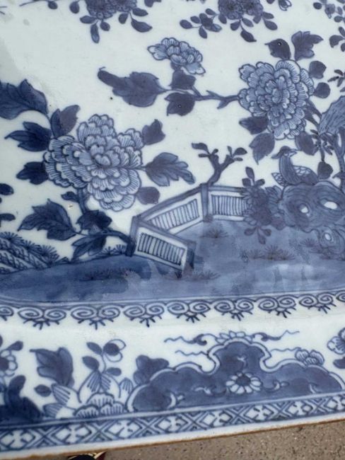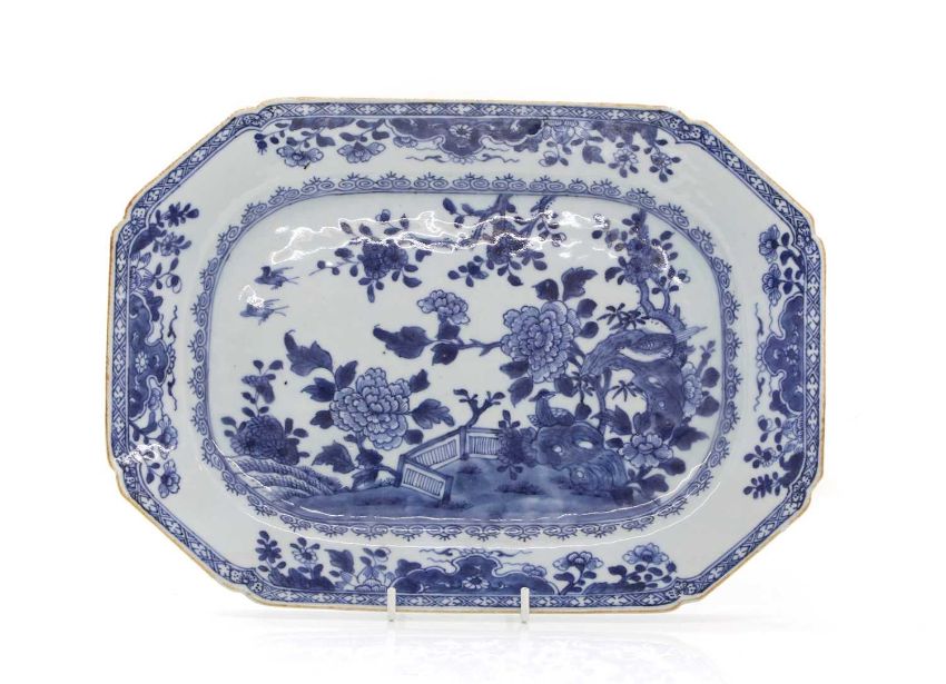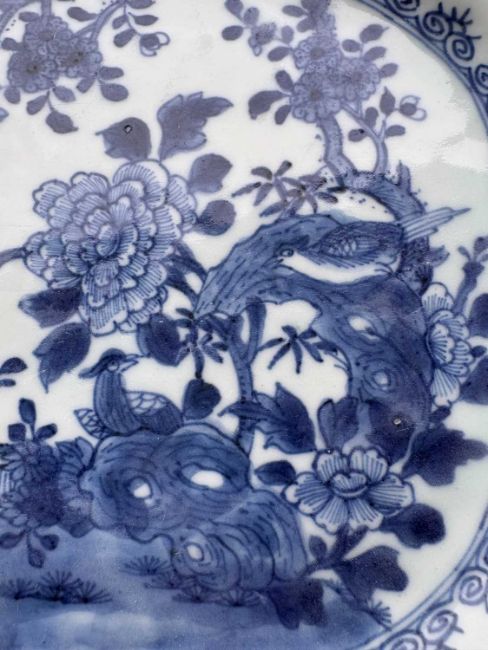 18th century, decorated with birds and chrysanthemums in a rock garden, with a trellis border,