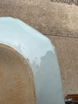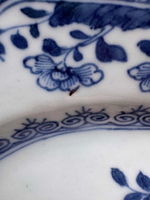 Chipping to the edges with some scratches on the rims with discoloration. Some pitting to the glaze from the firing process. Some fritting on the basal rim. No marks to the base Please see additional images.