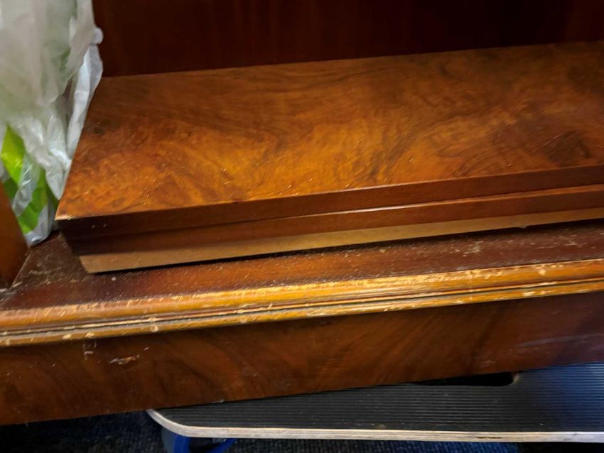 Condition ReportWith knocks and wear. Losses to some of the veneer. Some of the bookcase shelves are missing. The gun cabinet is metal, is lockable and can be secured to the wall but we are unable to conclude whether it meets BS 7558:1992 criteria. Some loss/damage to the back of the shelving (front of the secret compartment). Knocks to the extremities throughout. Damage to the lower cupboard door. Could benefit from a clean as seems to have been stored in a barn/garage where birds have been present. The marks on the base are dirt and dust as well as some damage. There are 5 interior shelves and ten brackets. Each of them is attached to the brackets with Velcro. The brackets are attached with magnets and velcro and are movable. The top section and base do separate but the top has metal supports that slide under the base. There are no shelves for the exterior bookcase provided. Sadly, we cannot provide the weight of the unit.