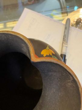 19th century, with red banding decoration encasing floral motifs,