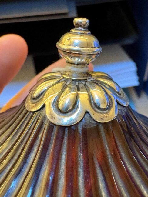 Finial slightly bent - hole to the top of the finial - rubbed through?