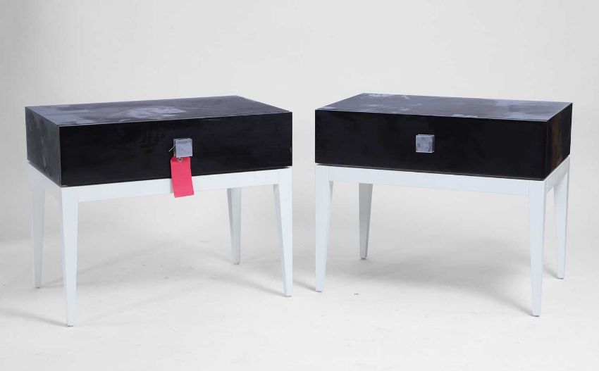A pair of contemporary bedside tables and a matching side table Modern