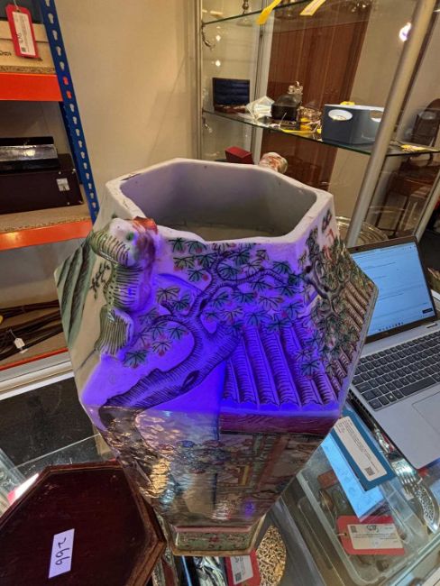 15.7.1 Lots with electrical components are sold as ‘antiques’ only for their historical or decorative attributes and for display purposes only. If you buy electrical Goods for use, you must ask a qualified electrician to check them for compliance with safety regulations before you use them.