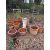 to include a pair of pots with banded decoration, a large terracotta pot with shrub, together with a pair of terracotta pots with moulded rims and a composite stone Corinthian column pedestal