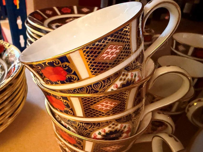 Condition Report: Some minor rubbing to the gilding. Makers marks to the base pictured. Various dates on the bases. Some minor painting faults are commensurate with production. Looks to be have been rarely used.
