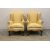 A pair of yellow damask upholstered wing-back armchairs, late 19th century,