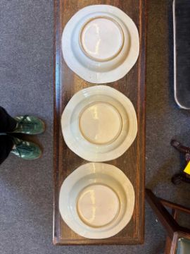 With nibbles to the edges. three with hairline cracks. One with larger chip to the edge. one with starcrack to the base. Please see additional images.