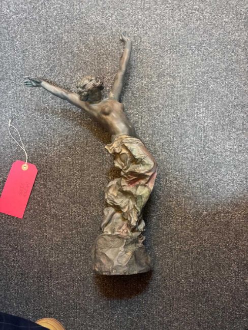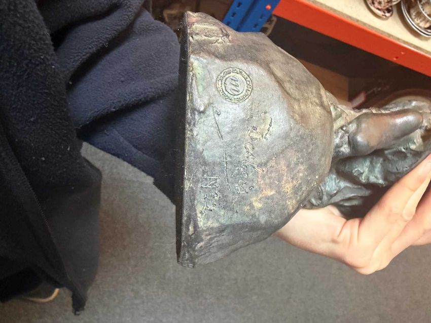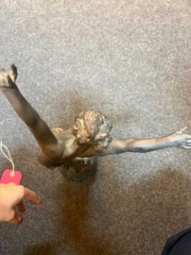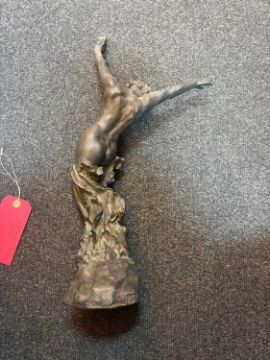 A collection of dust and marks to the surface. Scuffs to the base. This sculpture is not bronze - it is resin. Some minor scratches