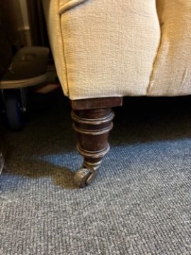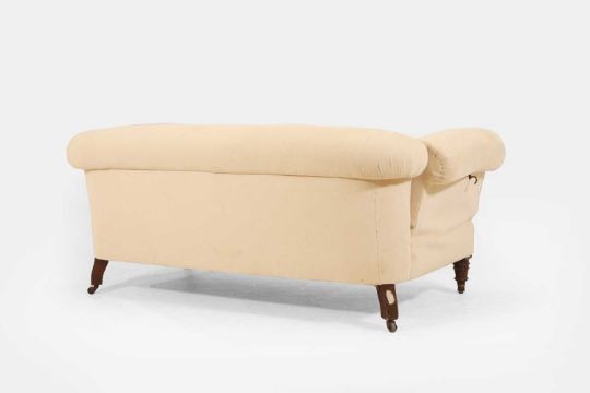 with turned legs terminating on brass castors, upholstered in cream fabric