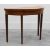 the crossbanded and line-inlaid top of demi-lune shaped form, opening to a green baize-lined playing surface above a frieze inlaid with satinwood stringing, raised on four square tapering legs.