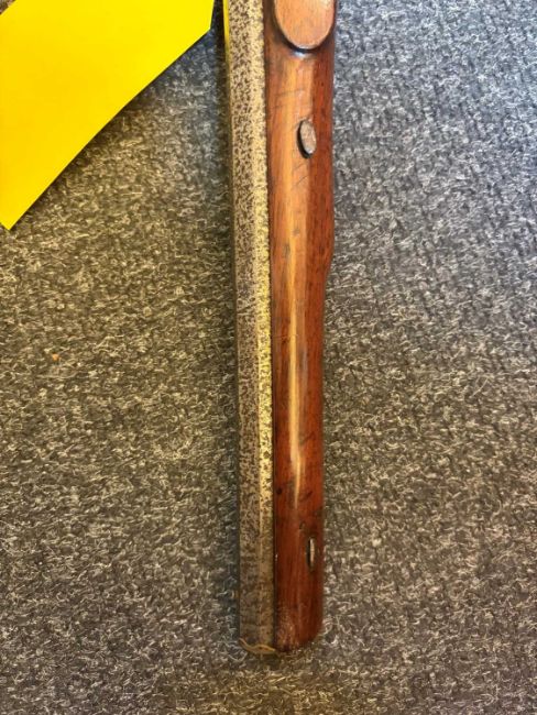 Iron work pitted and stained. Signed in gilt Innes and Wallace Edinburgh. No provision for a ram rod. Originally flint lock converted to percussion. Some markds to the wood areas commensurate with age and use. Some areas of wear. One are of dry cracking to the wood supporting the barrel.
