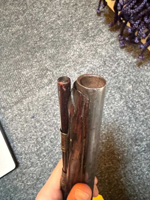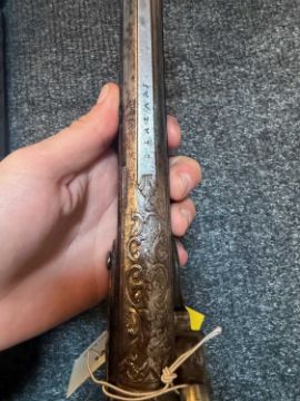 With some knocks and wear, converted from flintlock. Some gapping near the mounts, the wood has a slight gap near the end of the barrel. Some knocks and chipping near the mounds - see images. Some dry cracking to the guard and handle. The weapon cocks and fires on the pull of the trigger.